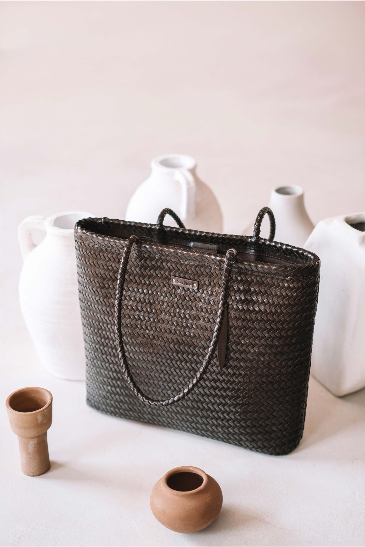 Bolso shopper en cuero trenzado con bolsillo interior | SIMONA